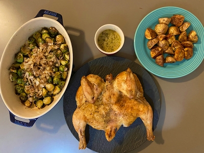 Thanksgivingに続き、みんなでわいわいができないので、 自宅でクリスマスディナーを作ってみました。 Whole Chickenはトレジョで買ったもので約2kg。