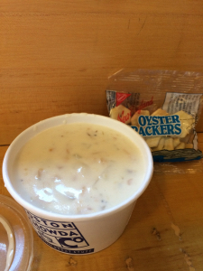 何か魚系と、クラムチャウダーを食べようと決めていました。