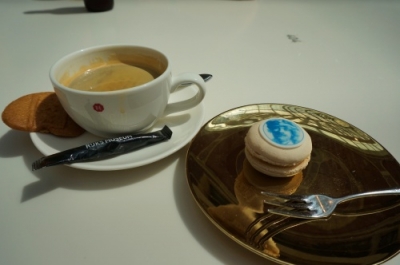 レンブラントのマカロン付きコーヒーを飲みながら一休みです。