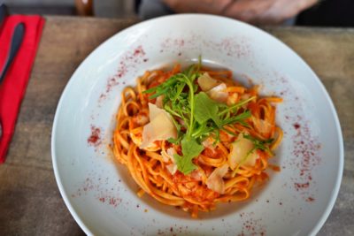 えびの入ったパスタもサラダも美味しかったです。